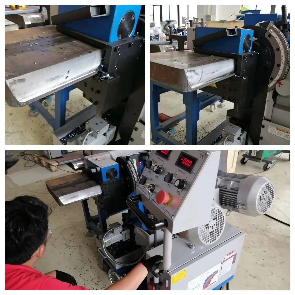 3) Cold cutting to avoid any oxide layer by using milling head and inserts for higher performance on surface Ra 3.2-6.3. It can do welding directly after bevel cutting. Milling inserts are market standard.